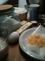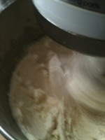 – place two cups flour, baking powder, and salt in the bowl of the mixer fitted with the paddle attachment. On low, add the butter and mix until the butter is the size of peas.