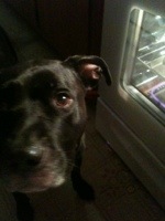For extra security, while baking, have a Pitt bull/ black lab mix guard dog, named Gus, keep watch while they are baking!