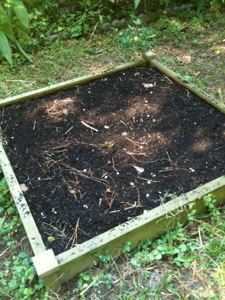 The first step is to rake the beds from all four sides. I rake the top couple inches loose and pull the soil toward the side I am working from. I do this from all four sides.