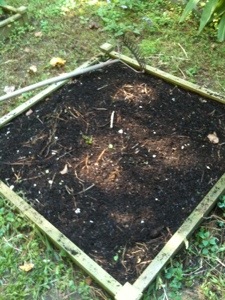 The soil was raked level. In the Spring I will add fresh compost and leaf mulch to improve the soil’s drainage and nutrients. I am lucky that the previous owner of the house for 40 years was a gardener and had really improved the clay soil.