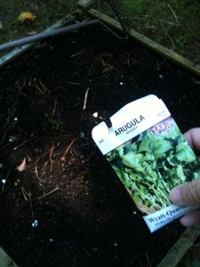 By noon, it’s warmed up to the 60s so I took the opportunity to clean out the vegetable beds and seed them with arugula or rocket.