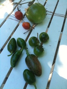 There were a few green tomatoes and jalapeños to harvest. All the plant material went to the compost pile.