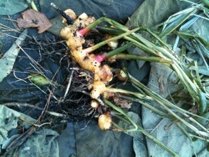 Frost has killed the foliage of the culinary ginger in the garden so it’s time to harvest the roots. It’s a shame, though, because one plant was beginning to bloom and its the first time I have had that to happen.