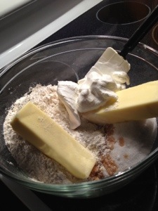 1) Cream butter, gradually beat in the sugar until light and fluffy, about 5-7 minutes. Add eggs one at a time and beat well after each. In another bowl combine flour, baking soda and salt. Add to the butter and egg mixture. Add vanilla and sour cream and beat on low until just mixed.