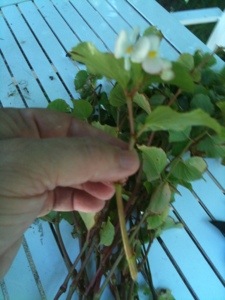 You can use this as an opportunity to root cuttings. This variety is Barbara Rogers and it grows about 3 feet tall and about as wide with large white flowers. This plant was added this year and only has four or five stems.