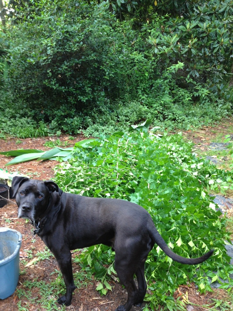 After only a few days I grew tired of all the leaning Rose-of-Sharons from tropical storm Andrea so they all were trimmed back to about knee high. They will shoot back up about three to four feet by Fall. They will just bloom later than normal.
