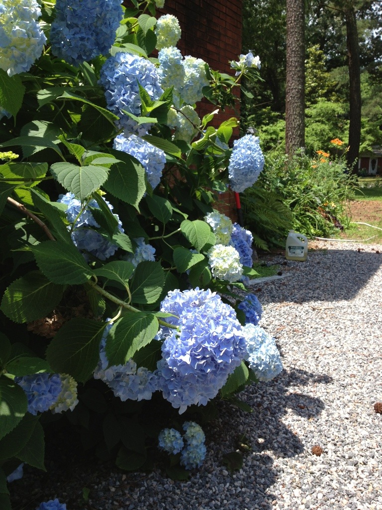 The hydrangeas along the drive are beautiful, as always! They all were cuttings from one plant which I found behind the old shed when I purchased the house ten years ago.