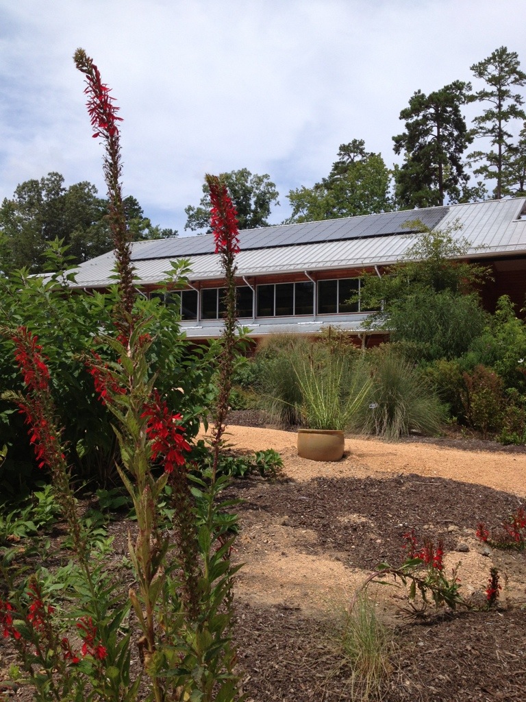 The Butterfly or Ginger lilies began blooming a few weeks ago and will continue until frost, too. They have a sweet fragrance and form strong clumps of bamboo like stems about 5 feet tall. Once they begin to bloom they tend to lean over.