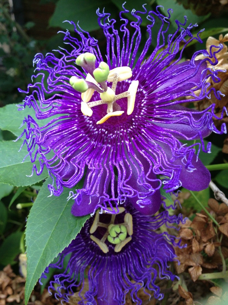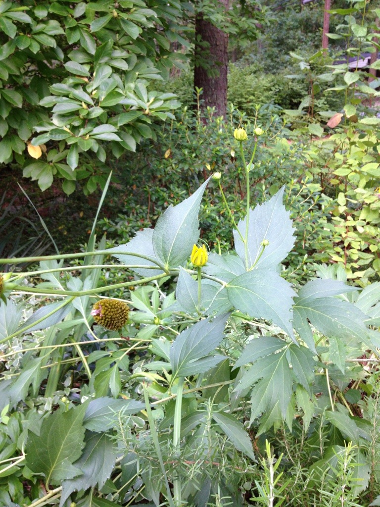 Incense Passionflower along the fence continues to bloom and will do so until frost. They are fragrant but can be weedy and spread by underground stolons.