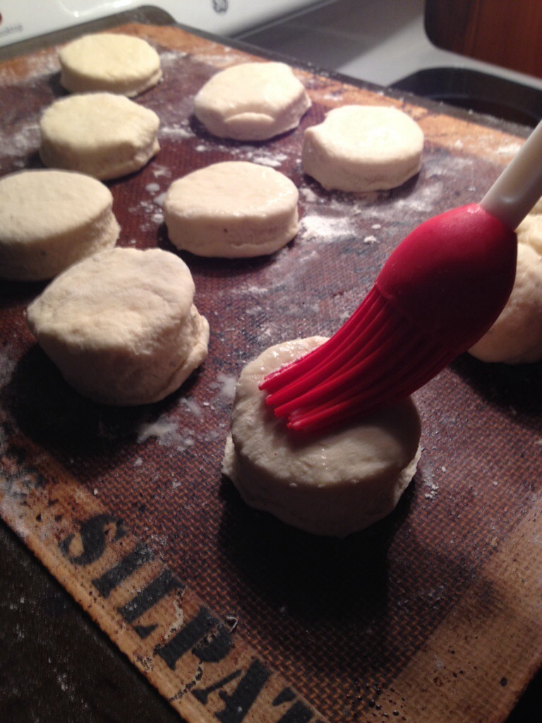 I kneed and folded the biscuits several times to make layers and I sprinkled dill inbetween the layers. Brushed them with buttermilk and butter, too! Yum!