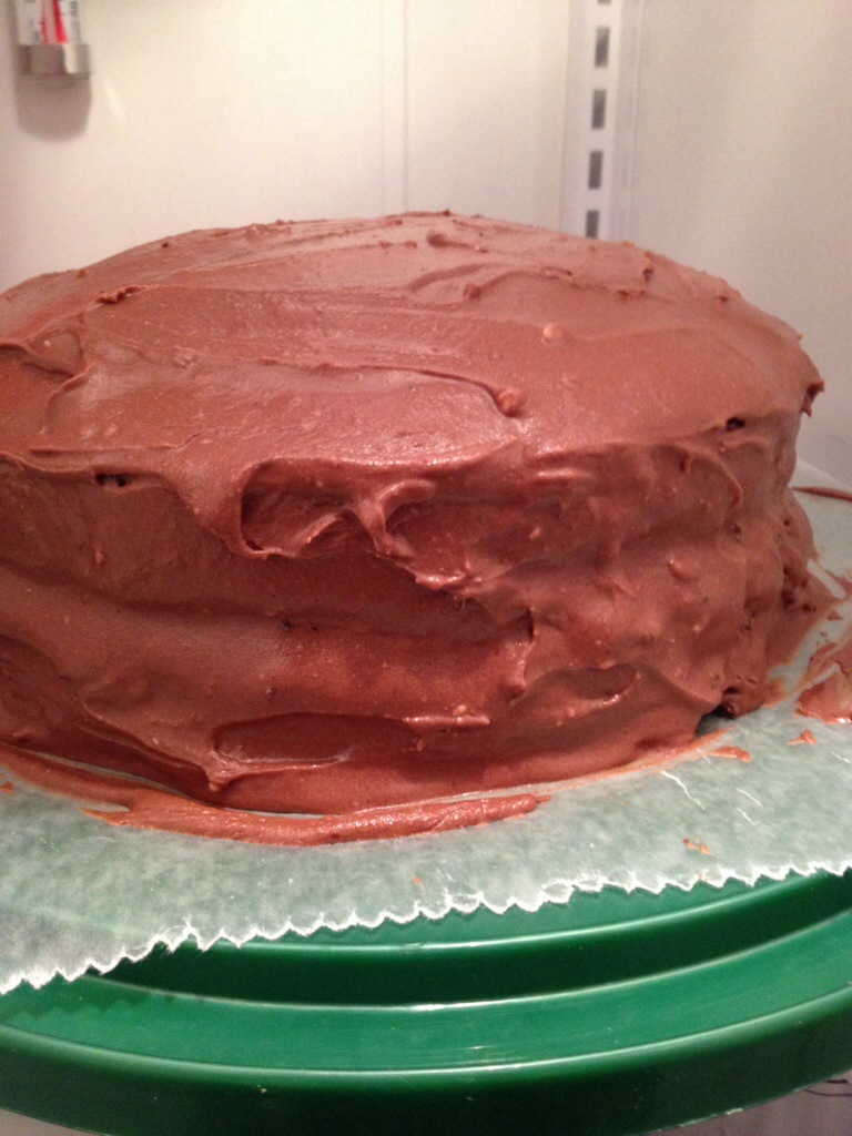 I have been looking at the label recipes of the Hershey’s Cocoa package and decided to make the chocolate cake recipe and the frosting recipe, too!