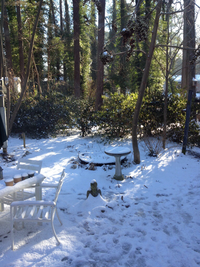 When it snows here we usually only get an inch or so and it melts in twenty-four hours. This five inches we received is still hanging around.