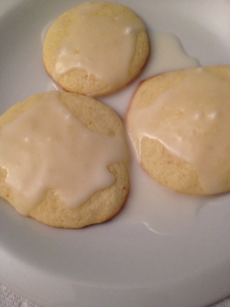 I originally spooned the glaze onto the cookies as you see in the first picture but I found dipping them into the glaze created better results.
