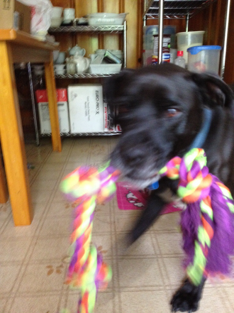 And Gus has a new chew rope. Let’s see how long it takes him to unravel it!