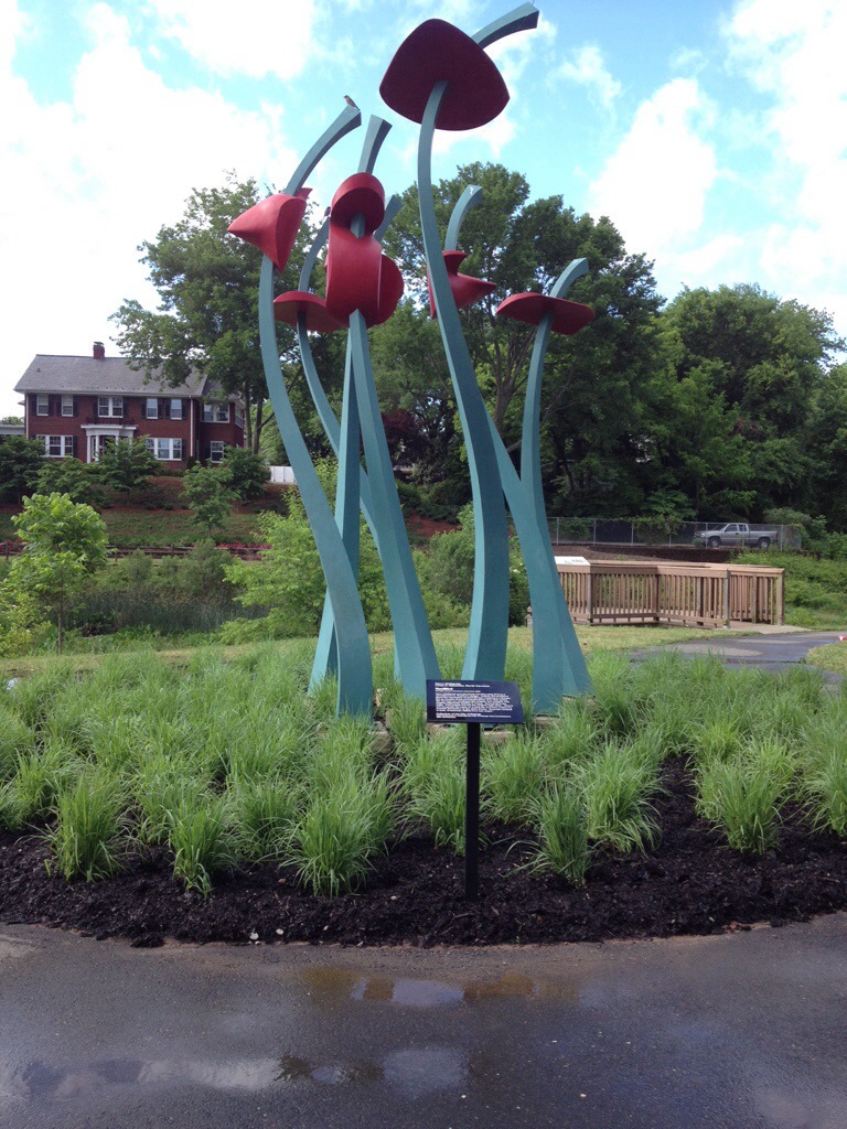 On the way back to the house I stopped at the Water Garden at Fred Fletcher Park. The shrubs around the Redbird sculpture have been replaced with a grass. Much better choice than the shrubs!