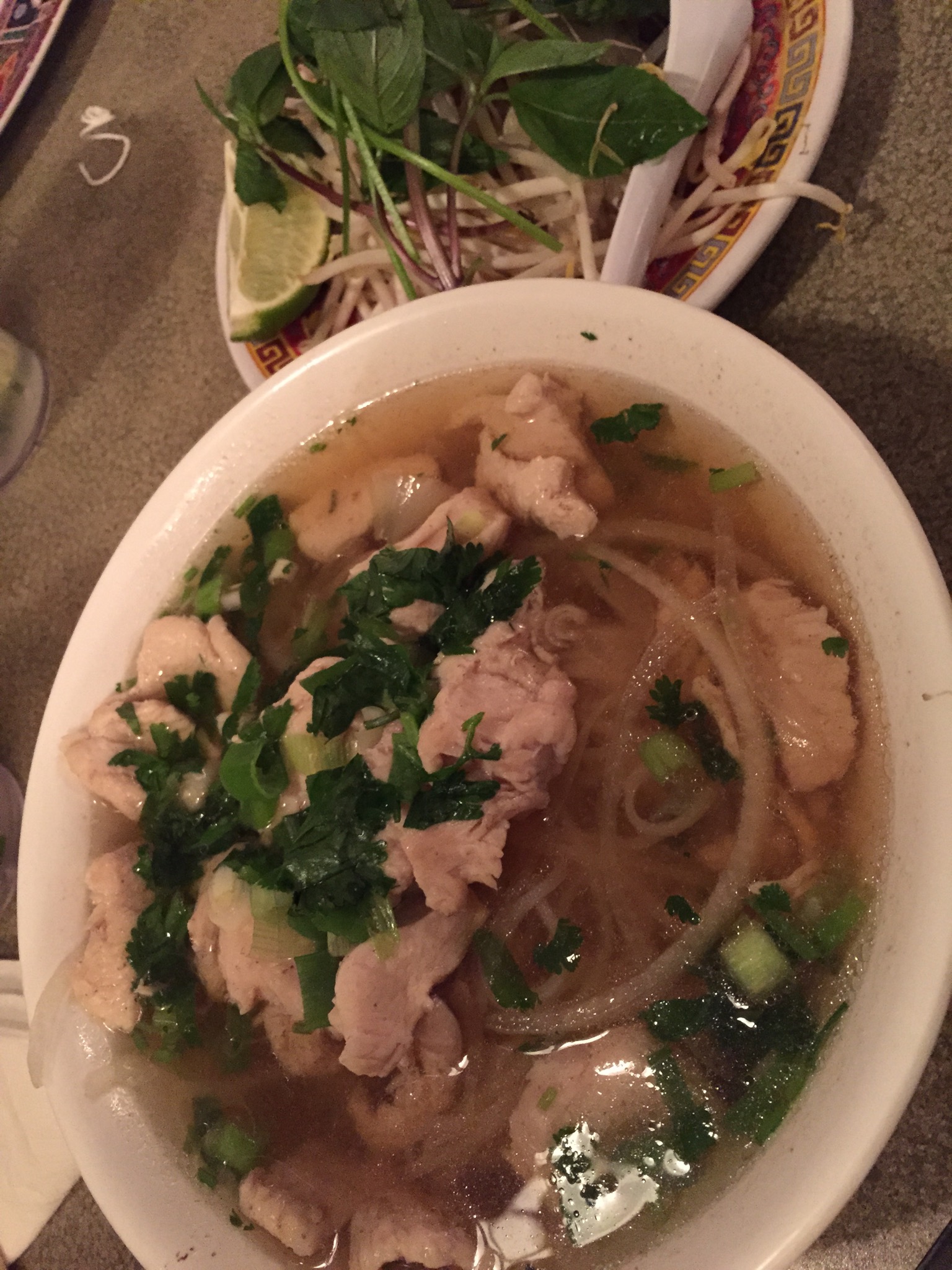 Pho – a Vietnamese beef broth and chicken soup with basil and cilantro