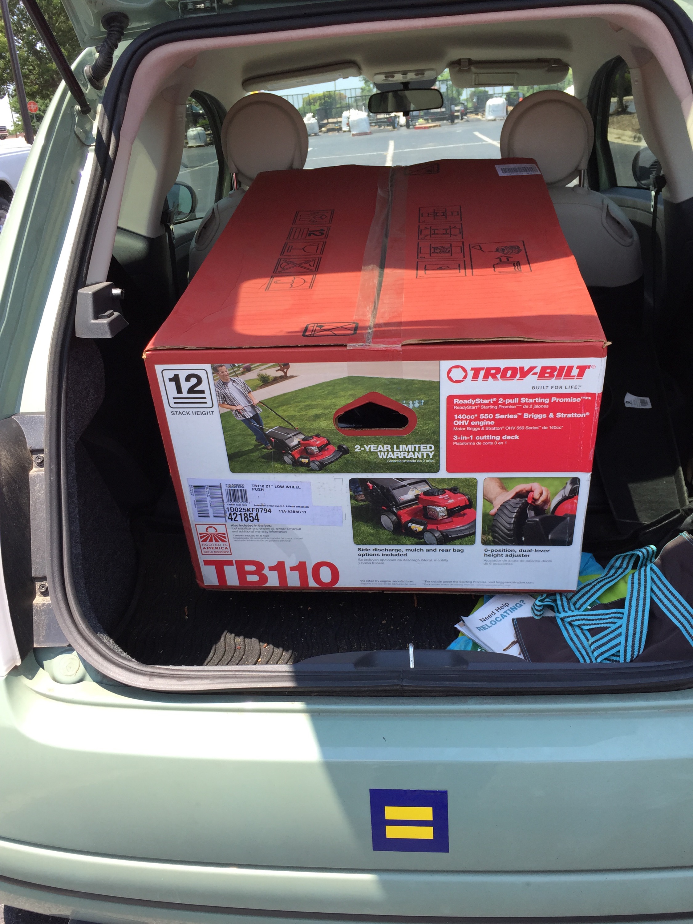 Of course, it was not until I had purchased a new mower and was heading to the Fiat that I even gave a thought about it fitting in the back! It did!
