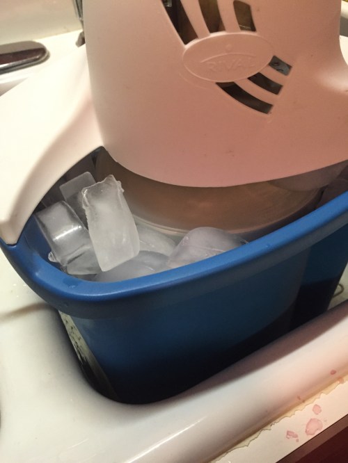 Put the lid back on canister and cover with ice and then a dish towel or cloth and allow it to harden for a few hours.
