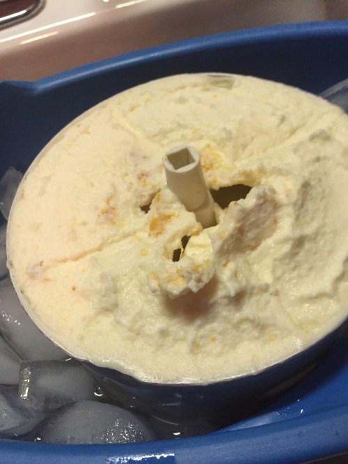 The motor will stop when it is frozen. Unplug it immediately so the motor doesn’t burn! You can see through the clear lid if the custard is frozen.
