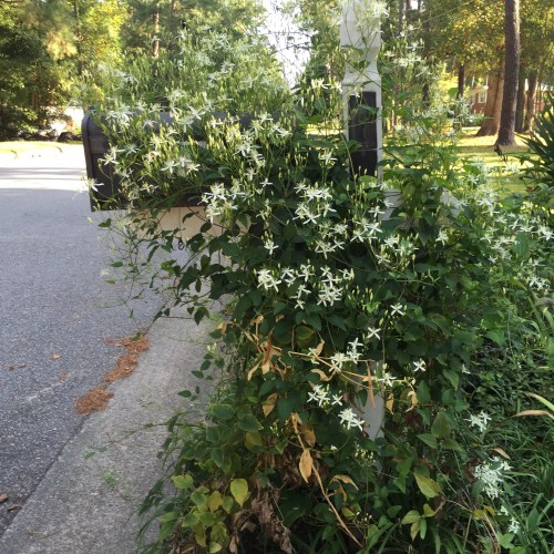 Rose-of-Sharons are wonderful large shrubs or small tree in the hibiscus family which bloom late summer until frost. The flowers are shades of white, purple, or burgundy and with or with-out a red throat. The single flowered varieties reseed to the point of becoming weedy! The flowers are only about three inches wide but if you don’t trim the plants they grow in a vase-shape to about 10 or 15 feet here in the Piedmont region on North Carolina.
