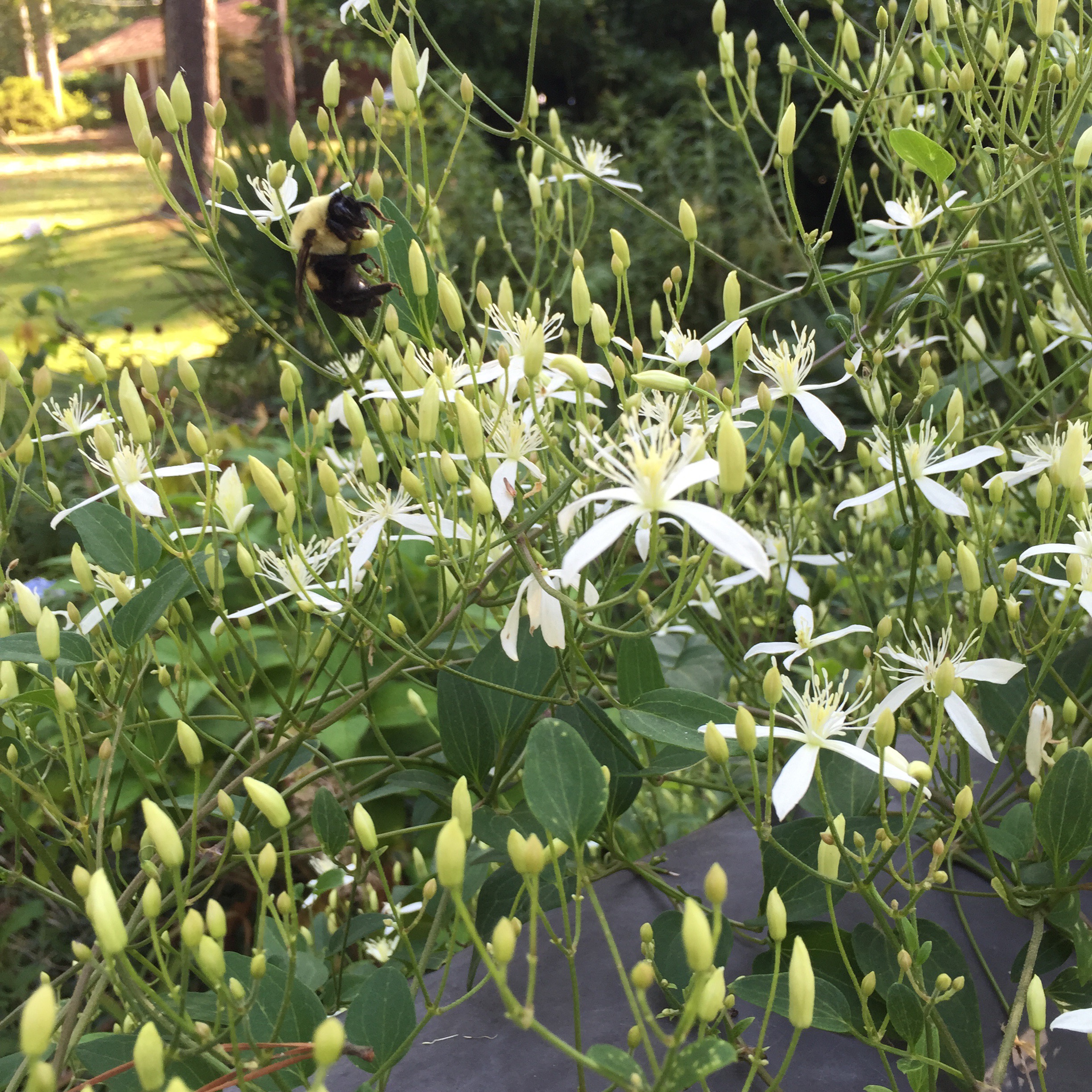 The large beds of this grass-like plant in the lily family run along the fence and around the patio. I am lucky that the original owners planted these. They begin blooming in late August and are followed by black berries. The birds eat the berries but the seeds pass through their digestive tract unharmed and germinate throughout the garden.