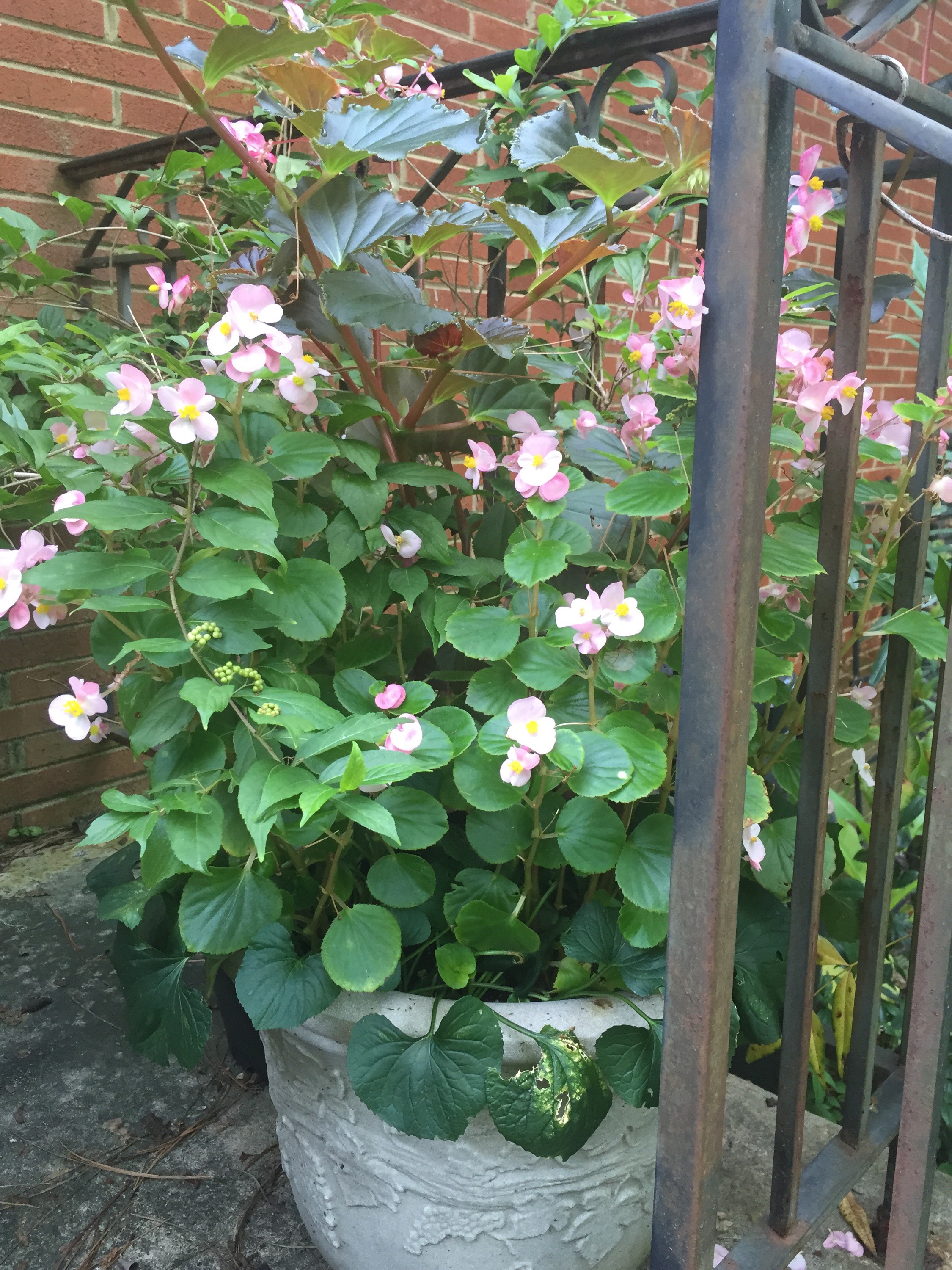 The large pots of fibrous begonias on the front porch have gone crazy and this is without any routine watering!