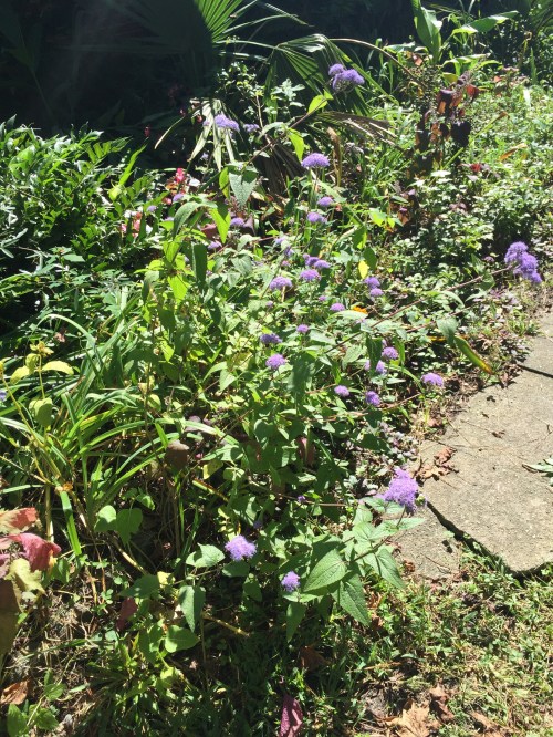 But let’s talk about the garden. Tonight it will dip down to the low 40s! Brrrr! The Blue Mist Flower (Conoclinium coelestinum) is still blooming strong, though! Their unruly mounds and aggressive nature is forgiven!