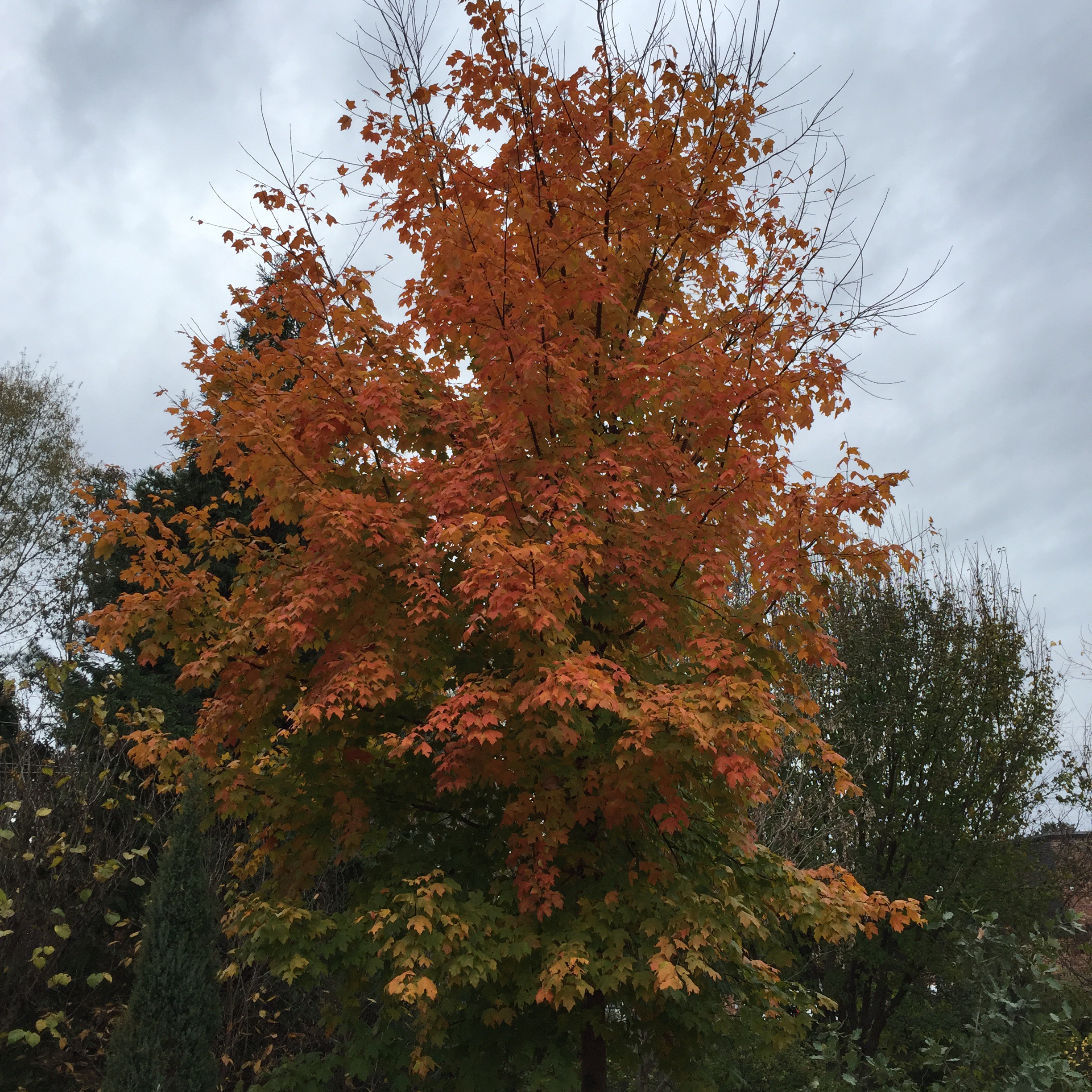 A few maples around town have held on to their leaves.There are so many hybrids now and many of those are a cross between several species.