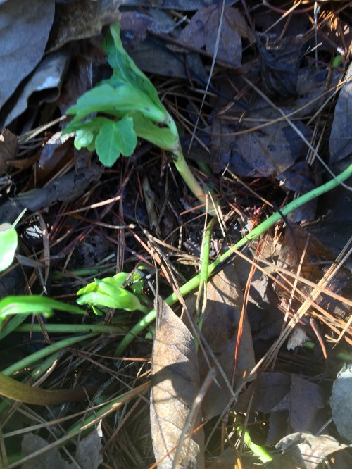 The hellebores have begun their growth cycle, too! Josep Lemper blooms early with crisp, white flowers and dark foliage.