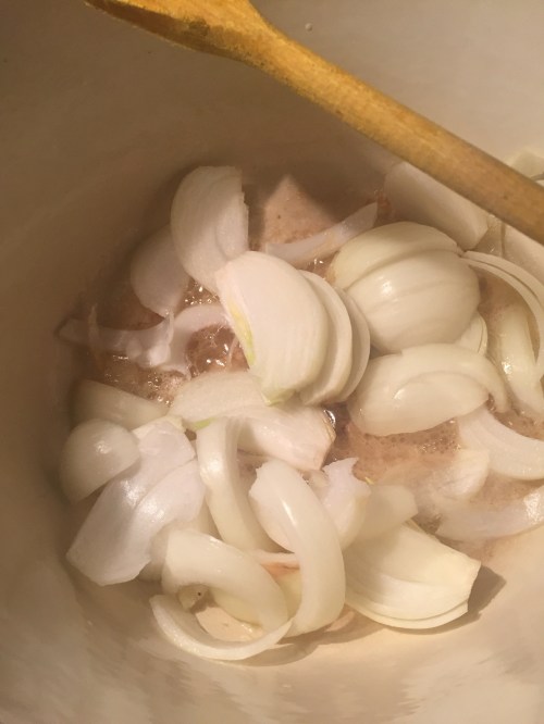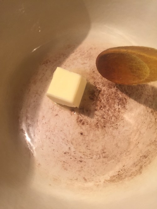 1) On medium high heat melt 1/8 cup butter in a Dutch oven. Add the onions.