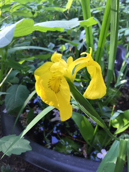 April’s shower brings May’s flowers…so the saying goes. The end of April saw the garden full of German irises and the yellow water iris.