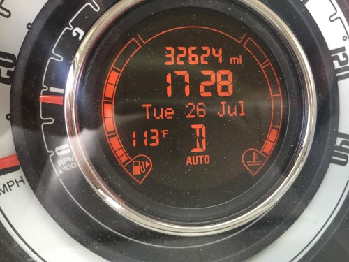 With temperatures near 100f the Fiat 500 becomes very hot when sitting in a parking lot all day! Whew!!