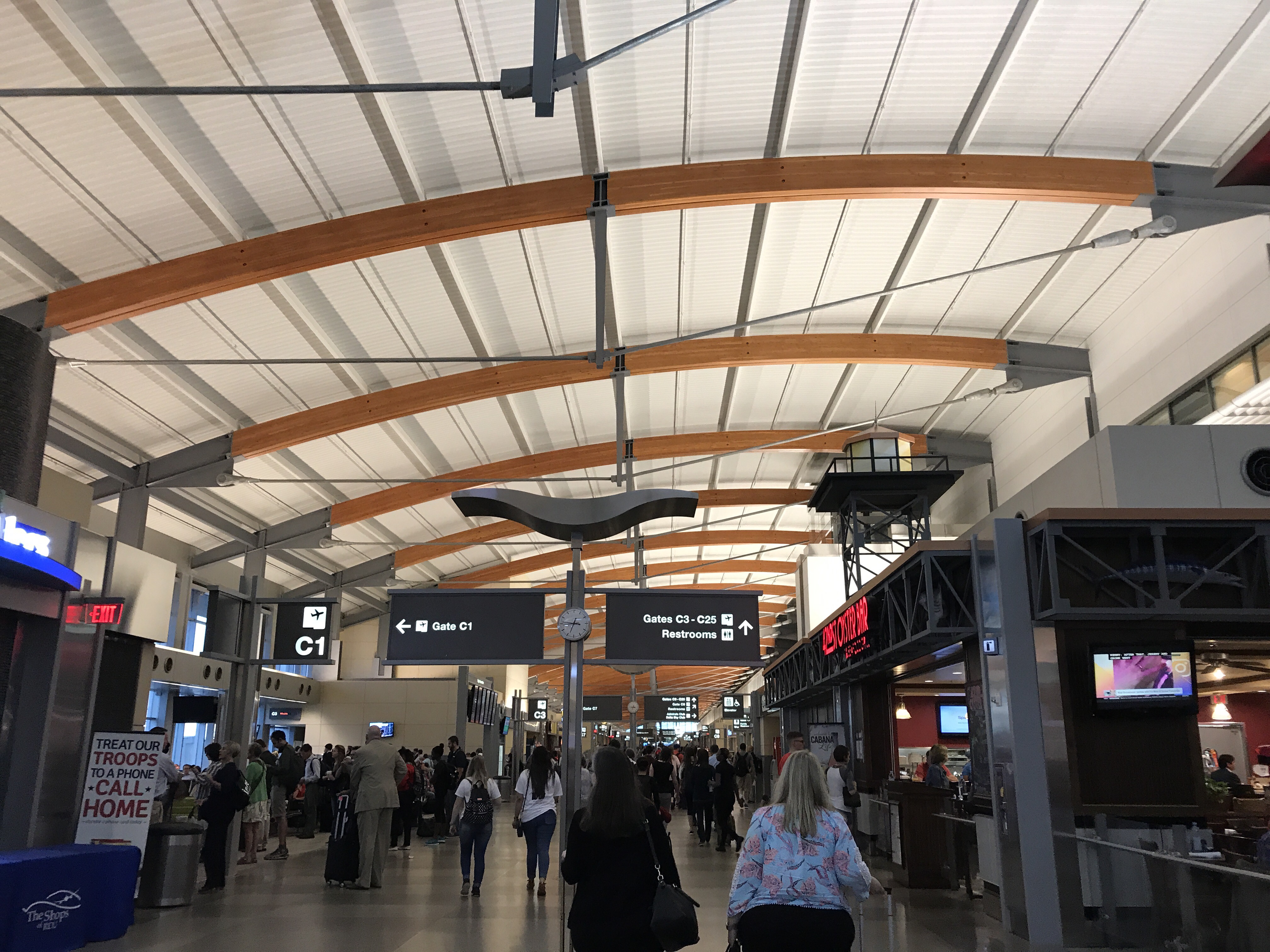 I am always fascinated with architecture and design. The Raleigh- Durham International Airport has recently been remodeled and I like the curved pressed beams for the roof supports.