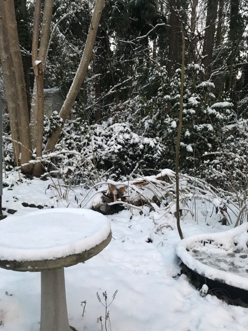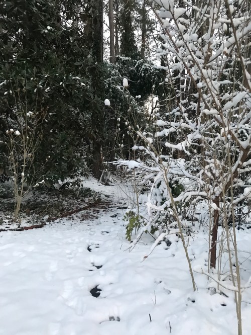 As I have been waiting for the Winter flowering apricots and witch hazel to bloom– we have had two snows!