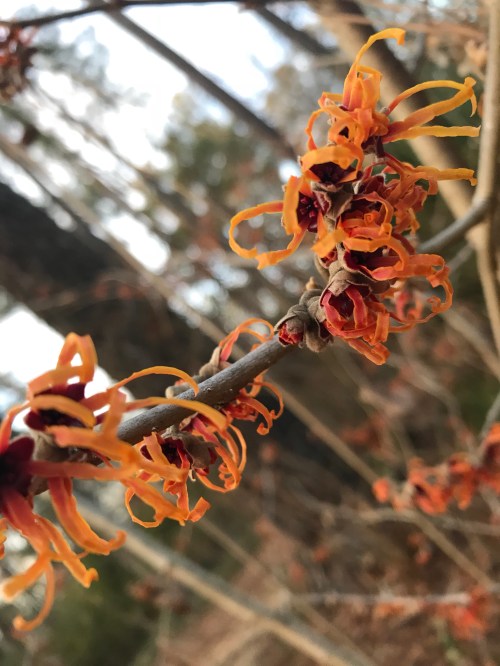 And witch hazel Jelena has been blooming for weeks! (Hamamelis x intermedia ‘Jelena‘)