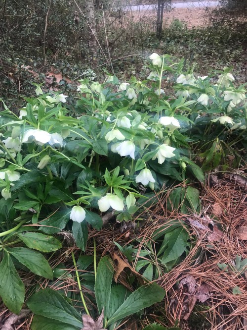 Hellebores blooming today in Raleigh.