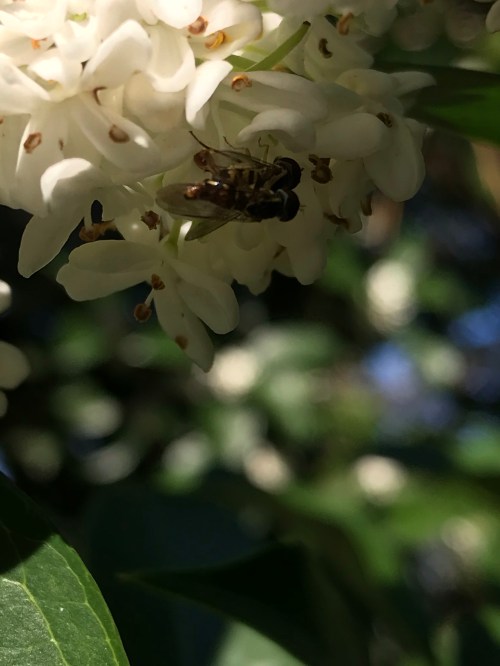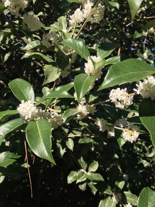 Holly-leaved Osmanthus is full of fragrant blooms and bees!Holly-leaved Osmanthus is full of fragrant blooms and bees!