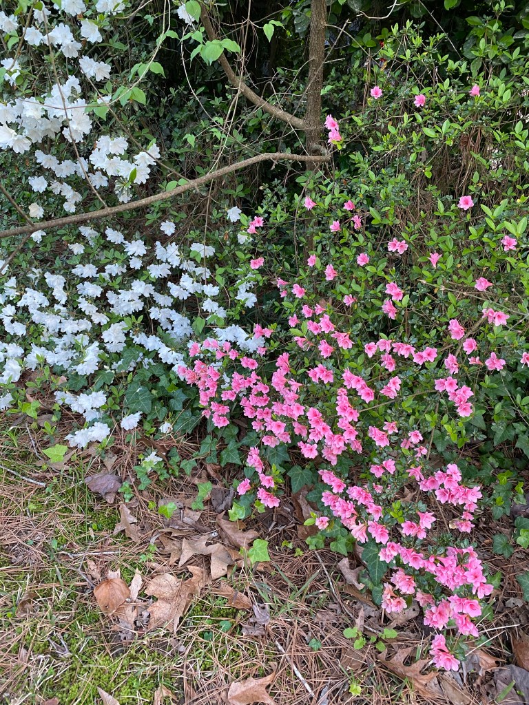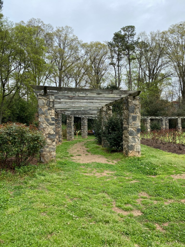 A few of the German iris are blooming!I forget how fragrant the Hollies are until they bloom in the spring. I believe this is a Buford holly which is planted in a hedge around the parking lot at work.Spanish Bluebells Azaleas Eastern Dogwood Eastern RedbudSweet Violet Perennial Vinca The Raleigh Rose Garden’s arborThis is the shape Crepe Myrtles should have…