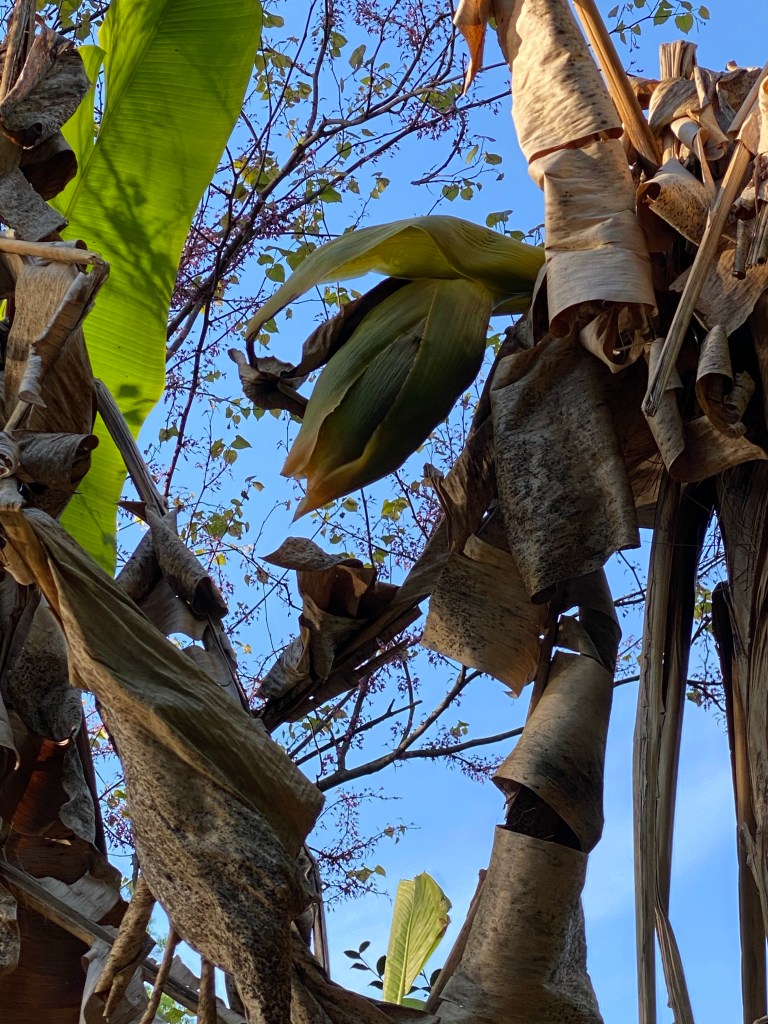 • First hard frost last night- about 25f. Basjoo bananas are slightly frost burned…,