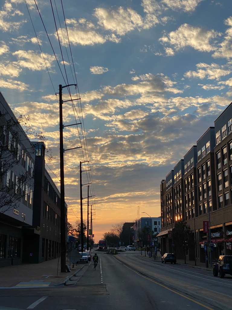 The Dillon Building- remodeled into apartments and a high rise office building in the Warehouse DistrictSunrise on Hillsborough Street near NC State University looking East through the latest building boom of student apartments.Cherry trees blooming in The Village District shopping center. formerly known a Cameron Village Shopping Center…These photo murals have been appearing all over downtown.Pullen Park- Once part of a private farm and part of the land grant given to North Carolina in 1887 to create NCSU- North Carolina State University . The 66.4-acre park was once the private estate of Richard Stanhope Pullen.