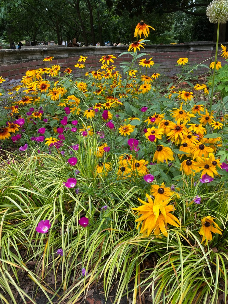 Nash Square- one of my favorite city parks with a nice collection of trees and perennials and The Fireman’s Memorial and now The Orange Ribbons : The orange ribbon is used for the United Nations International Day for the Elimination of Racial Discrimination.