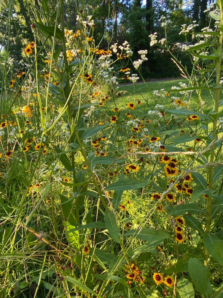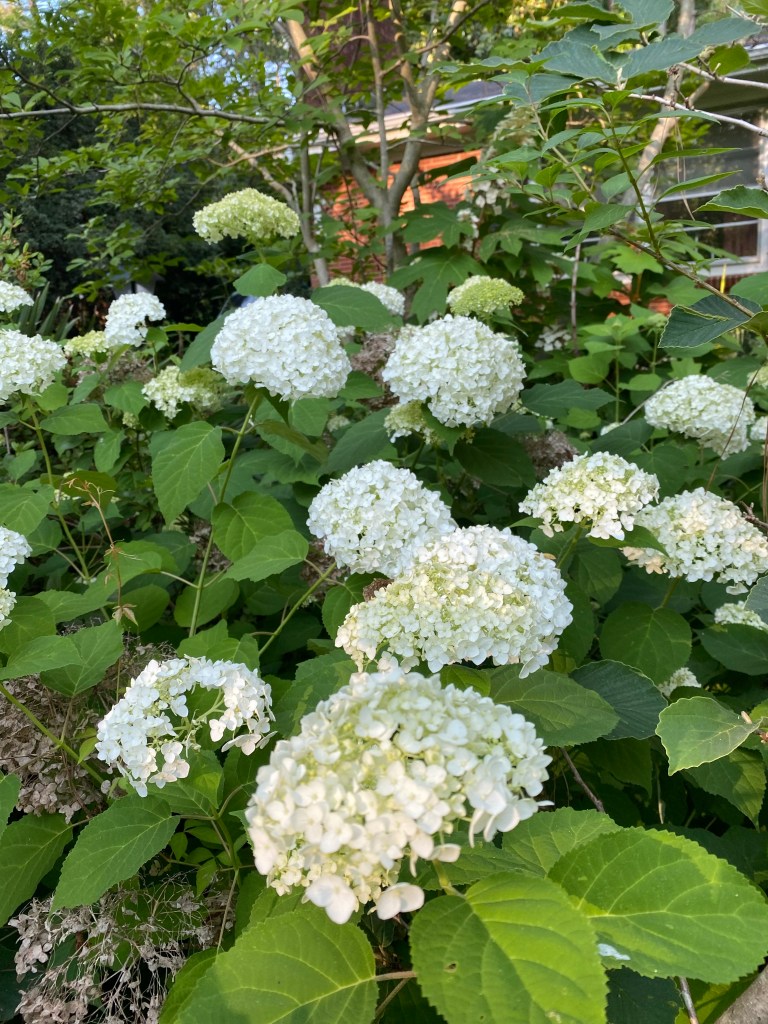 Bermuda lily (Easter lily)Bermuda lily (Easter lily)Oak leave hydrangea Oak leave hydrangeaOak leave hydrangeaAnnabelle hydrangea Endless Summer Blushing Bride HydrangeaCommon milkweed The meadow along the street curb is blooming with black eye Susans and meadow coreopsis and a mix of asters And one rain lily!