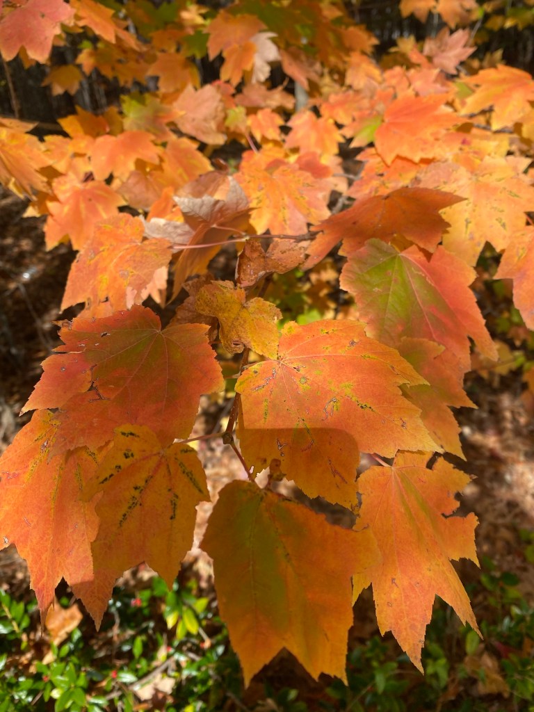 Yes, plants are bright now but leaves are falling….. and it’s in the 70s again!!!