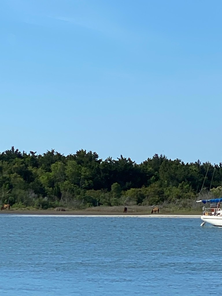 The is an island across from the Beaufort, NC waterfront where horses live free. It’s a rather large island so they are not always on the Beaufort waterfront side of the island.