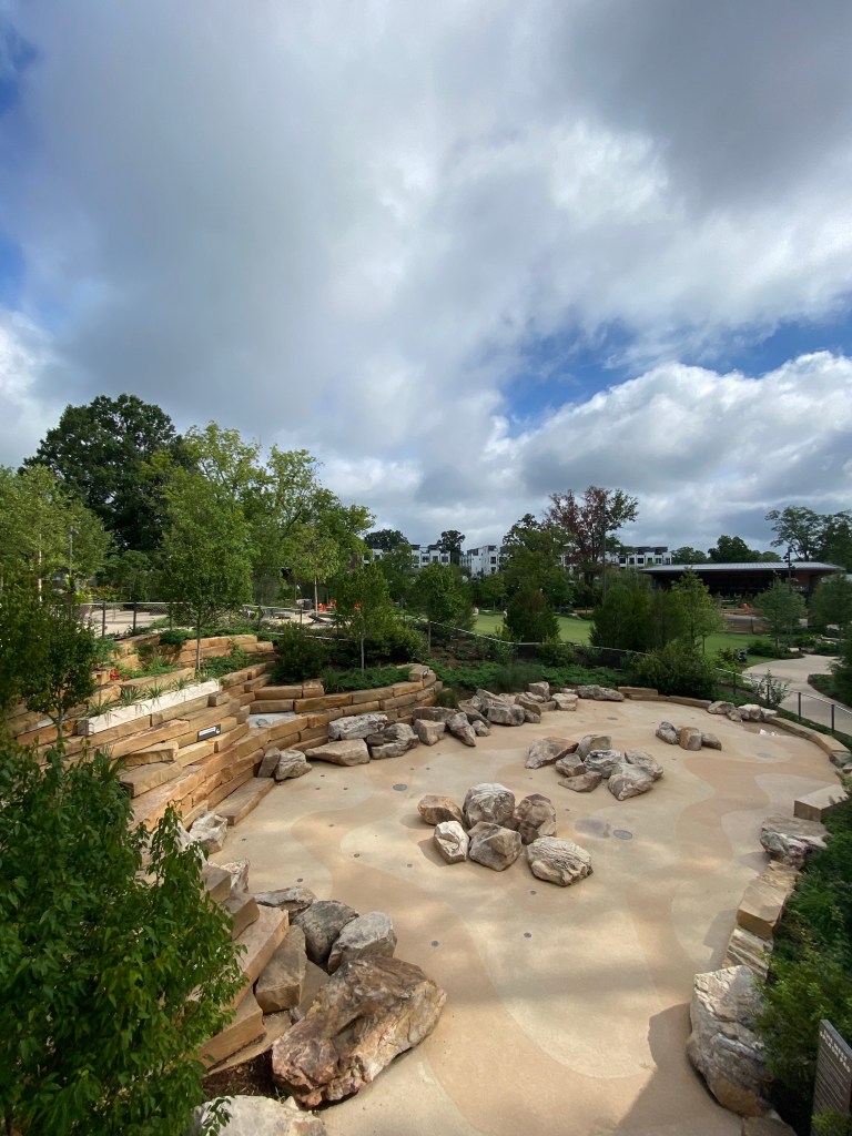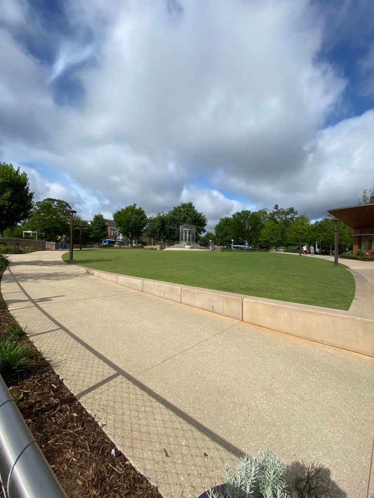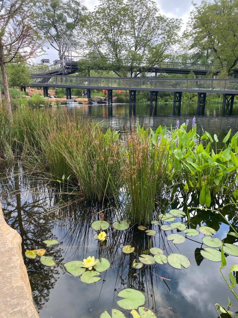 The newish Downtown Cary Park has experienced its first summer and the plants have grown immensely. The pond and water plants are lovely.