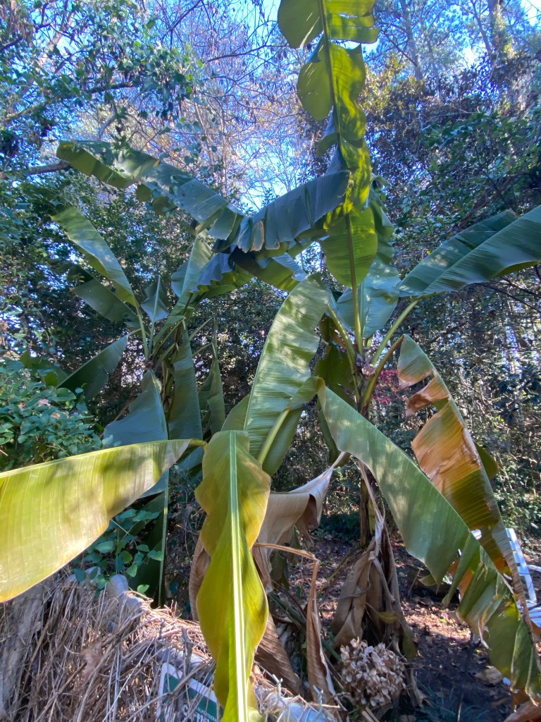 First hard frost last night- about 35f. Basjoo bananas are slightly frost burned…,